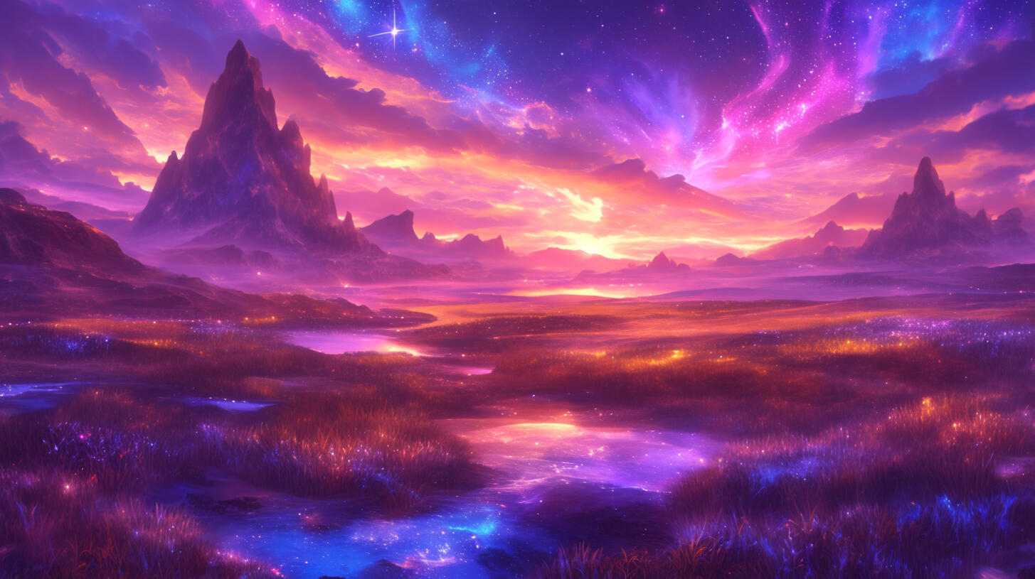 + The Endless Horizons: Mountains that seem to spiral toward the heavens frame Thaloryn, their peaks crowned with glowing violet crystals. Streams of liquid light wind through the valleys, their surfaces reflecting images of possible futures.